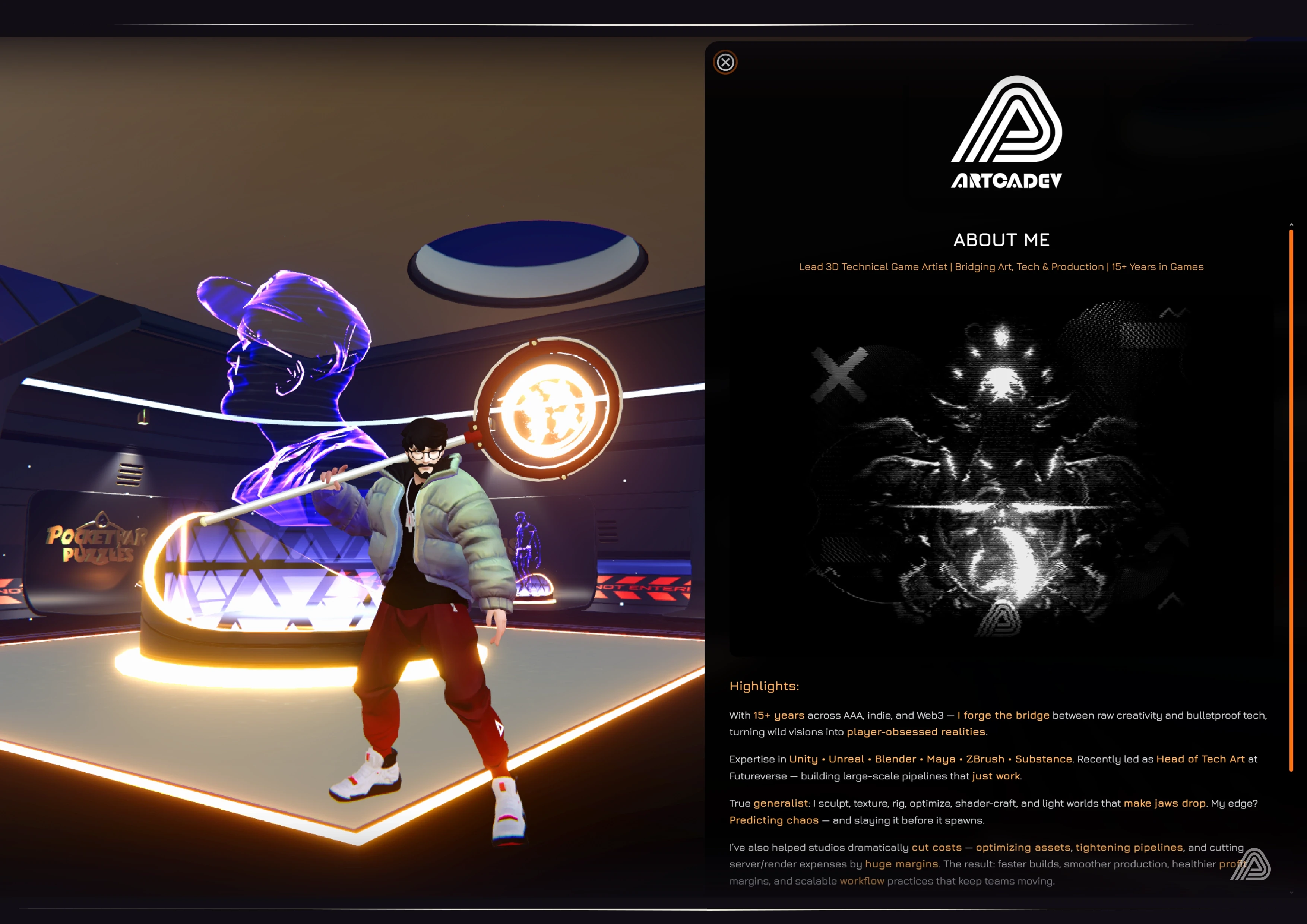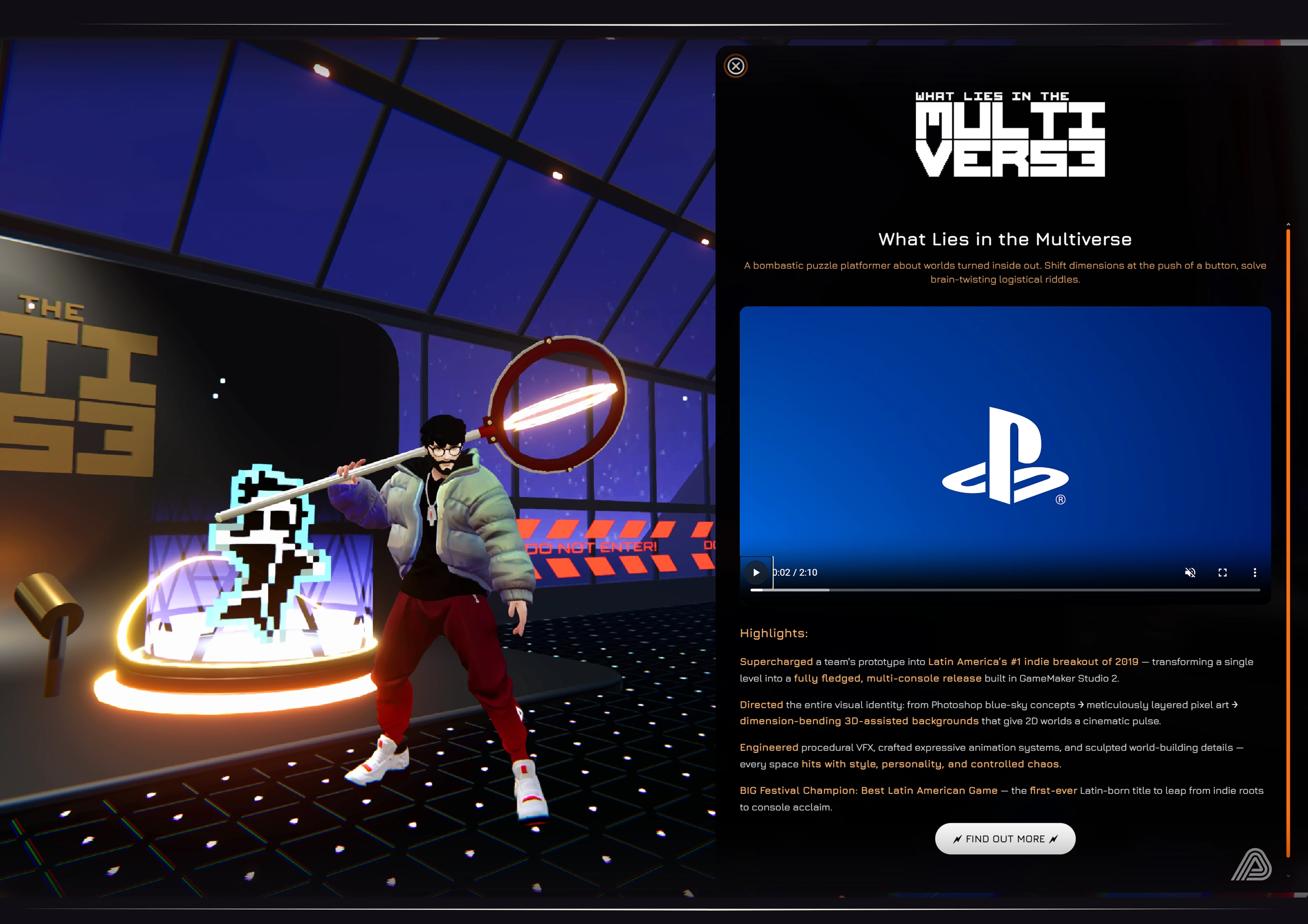 Six iconic IPs, hundreds of production assets, custom tools, and a few war-stories that are still running strong in Readyverse today, all wrapped in one silky WebGL experience.